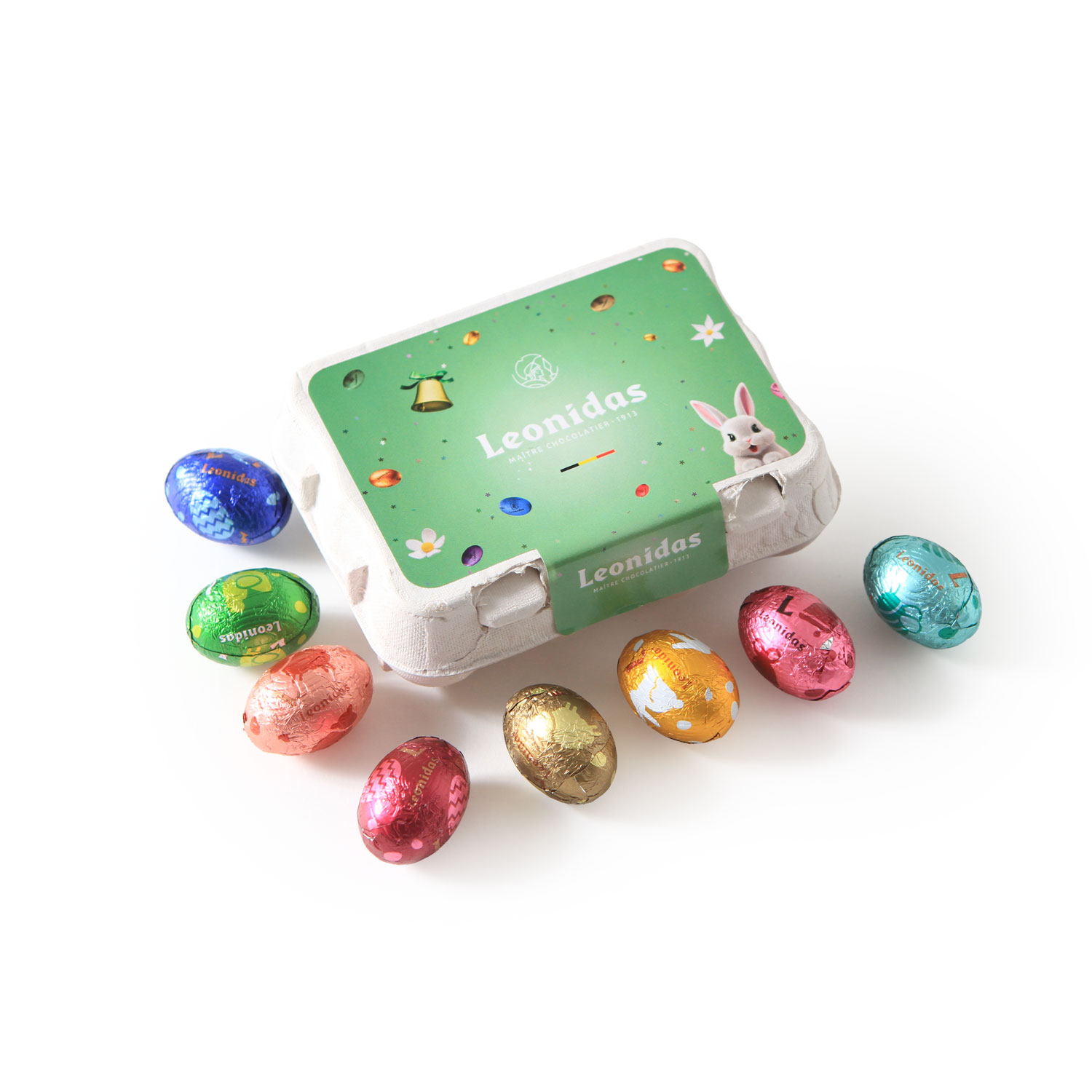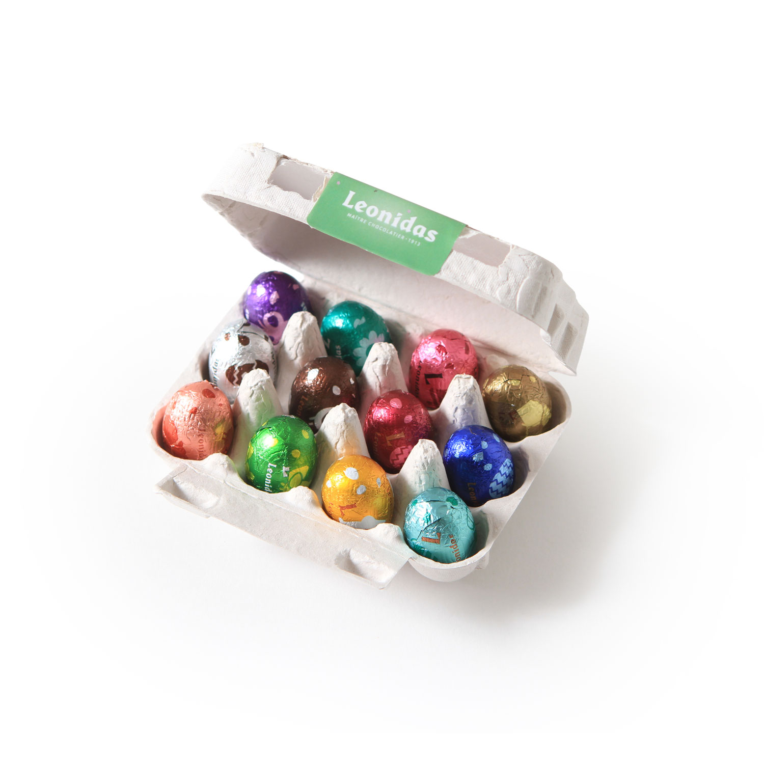 A Leonidas Easter favourite! This charming egg carton gift set is filled with a delightful assortment of Belgian chocolate Easter eggs in a variety of flavours and fillings. Each order includes one 12-piece carton, making it a festive gift for family, friends, or anyone who loves chocolate.